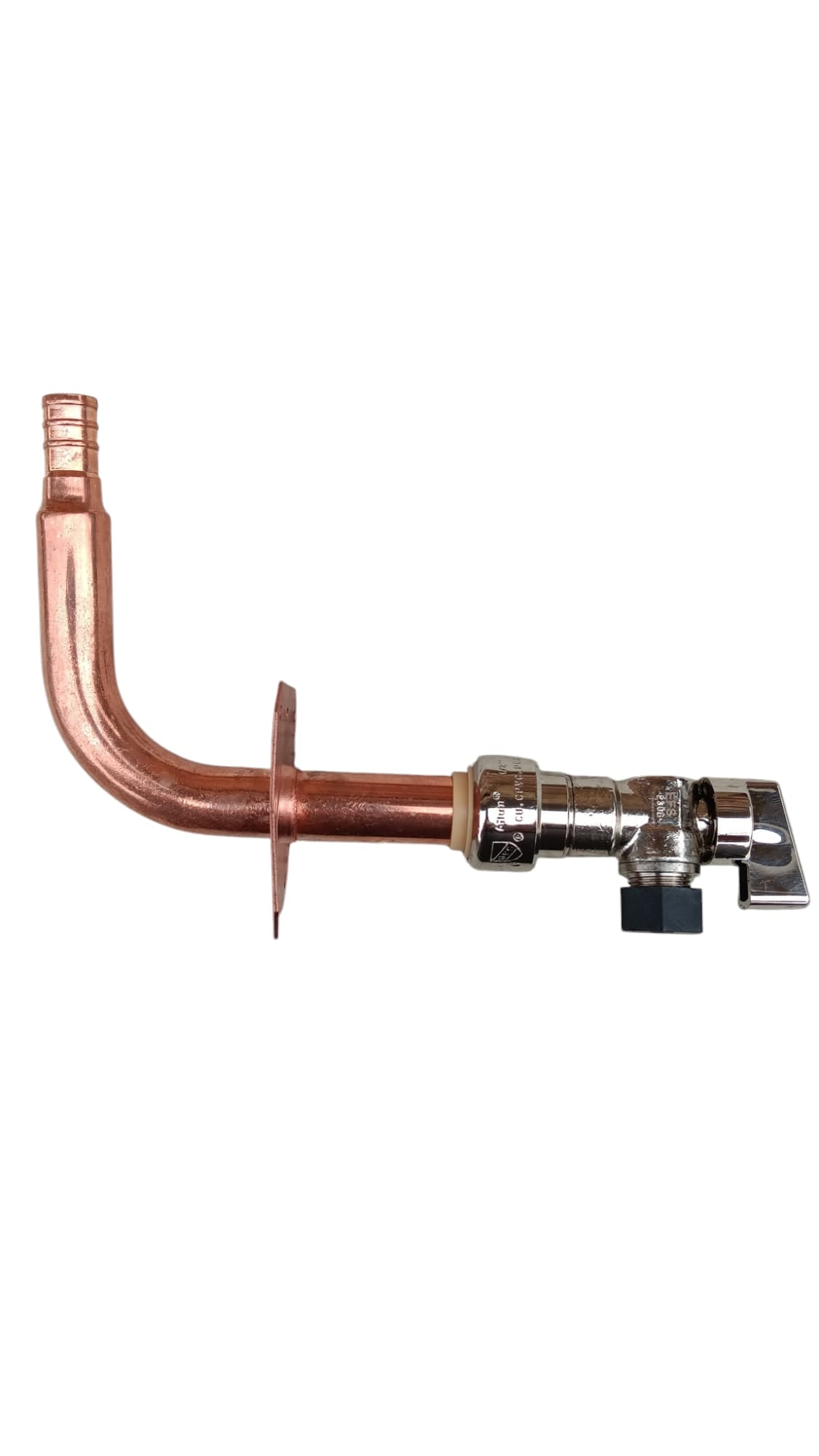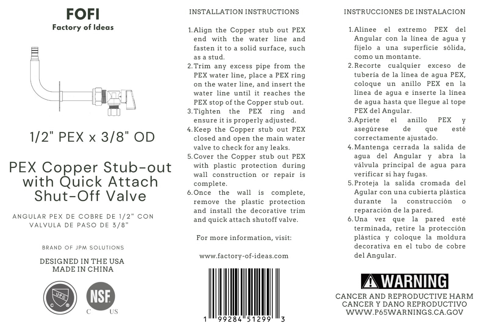 Our quick connect plumbing connector is the easiest way your plumbing fixtures. The copper fitting is the perfect interface to any 1/2 inch PEX line to a standard 3/8 fixture. Designed by licensed plumbing professional, this quick connect saves time and improves the final install by reducing the installation time and steps required for a clean finish. The shut off valve can swivel 360 degress to mate with the fixtures in any orientation. This system saves 10 minutes or more per line!